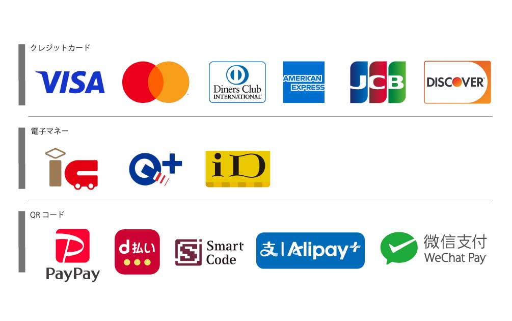 THE INKでは現金でのお支払いの他に、下記お支払い方法に対応しております。